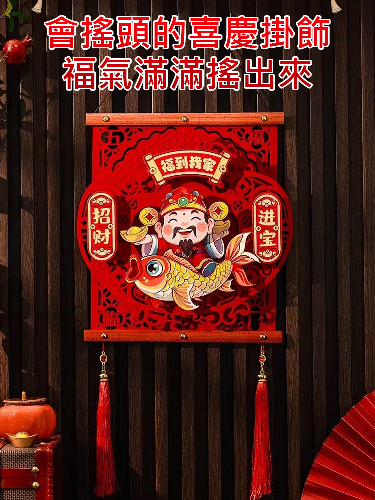 搖頭財神招財進寶客廳掛畫